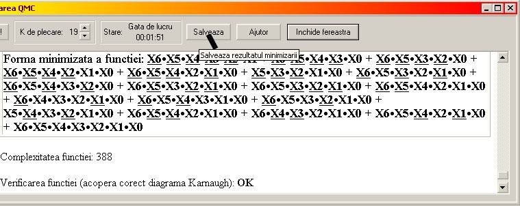 Cand procesul de minimizare s-a terminat, analiza algoritmului si functia sunt afisate in fereastra sub forma de pagina HTML, care poate fi salvata pe disc.